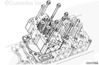 從康明斯 QSK23缸蓋頂部拆卸冷卻液排氣管。拆下九顆缸蓋安裝螺栓。拆下缸蓋。拆卸并廢棄缸蓋密封墊。