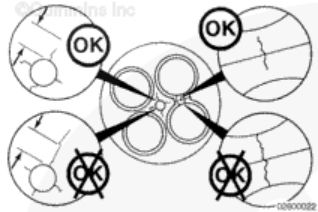 康明斯 QSK23缸蓋氣門之間的裂紋兩端必須可見。如果裂紋的一端已延伸至氣門座孔(氣門座后),缸蓋的狀況可能有問題。