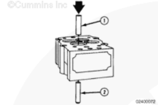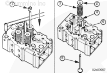 使用氣門彈簧壓縮器(零件號 3163606 或等同物)或氣門彈簧壓縮器架(零件號 ST-1022 或等同物)。零件號為 3164594 的氣門彈簧可與 3163606 以及 ST-1022 配合使用,同時壓縮全部四個氣門彈簧。也可以使用零件號為 3375960 的氣動氣門彈簧壓縮器(或同類設(shè)備)。在拆卸前標(biāo)記氣門位置。進氣門和排氣門不同。此步驟有助于整個組裝過程。