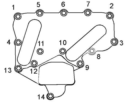 (4) 固定螺釘固定機(jī)油濾清器底座的固定螺釘?shù)呐ぞ?.. 22 N·m(16 lb ft)