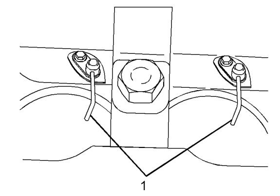 1. 將桿 (3) 插入活塞冷卻噴嘴 (2) 的端部。 桿 (3)的直徑為 1.70 mm (0.067 in)。 桿 (3) 必須高出缸體的頂部。