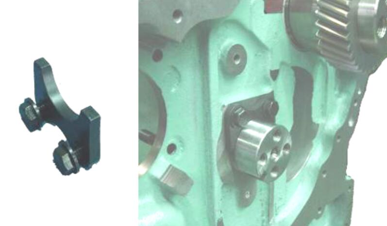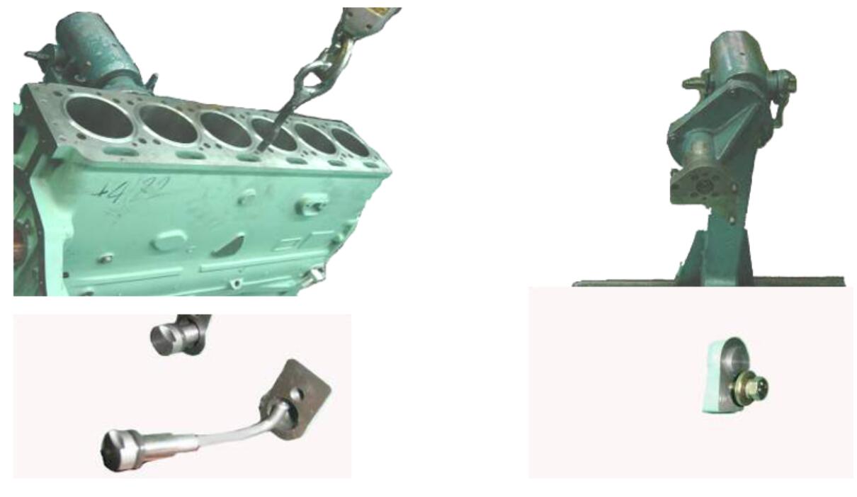 3.8.2 機油泵吸油管固定架,注意放入第五道主軸座上(根據(jù)機 型變化)。用力矩板子把緊,22套頭,把緊時注意