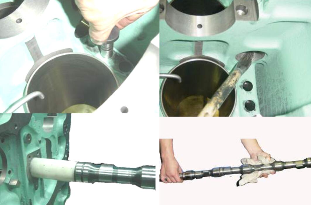 機身吹主軸油孔,及凸輪軸孔,主油道等油孔,檢查有無雜物是否暢通。.挺柱清洗,用風(fēng)吹孔,檢查是否暢通。曲軸主軸孔加油,機身主軸孔加潤化油,挺柱孔加油。加入挺柱,并試一試緊不緊,如果緊,用∮17.5H8K10絞刀,絞孔再裝入。