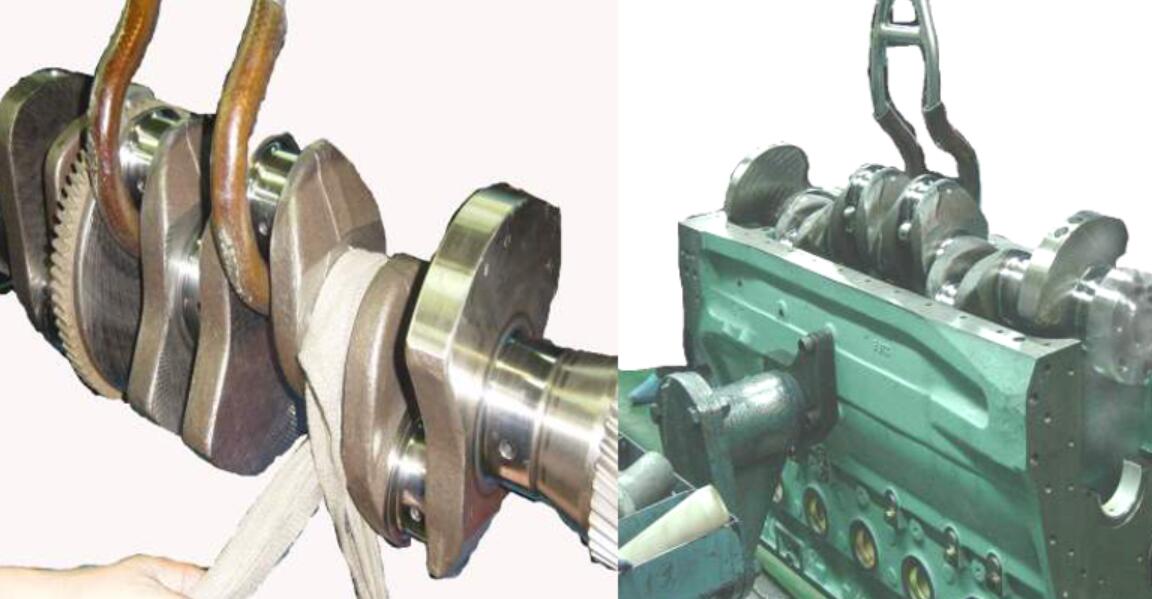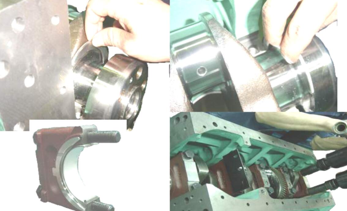 3.6 向軸瓦、曲軸加注清潔機油。將曲軸安裝到機身上,安裝時注意1、6缸飛鐵面朝上。將下主軸瓦安裝在主軸承瓦蓋上。