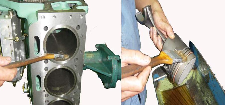 清潔缸套內(nèi)壁、曲軸軸頸,盤車逐缸擦洗,保證每個(gè)缸套內(nèi)壁和曲軸軸頸都干凈。