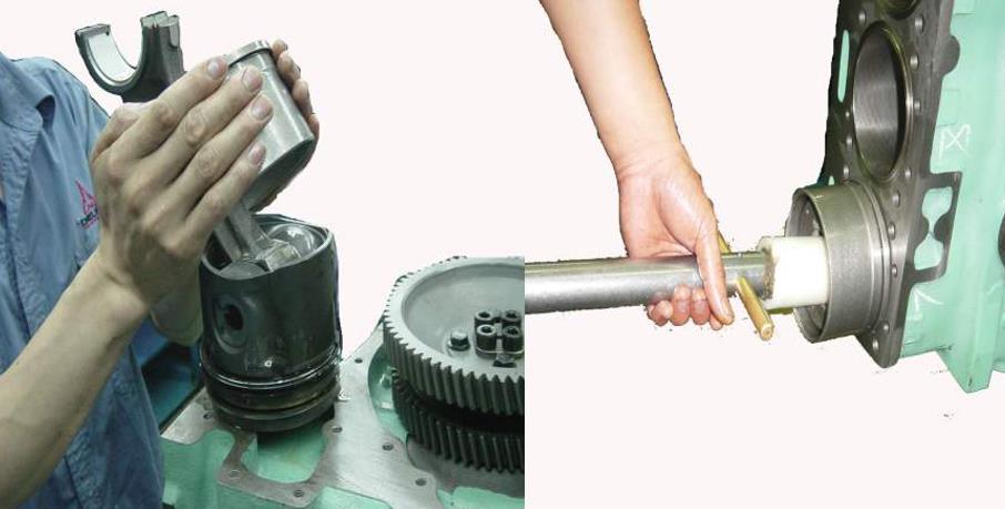 連桿裝完后,檢查連桿螺栓的把緊力矩。檢查曲軸的轉(zhuǎn)動(dòng)緊度。