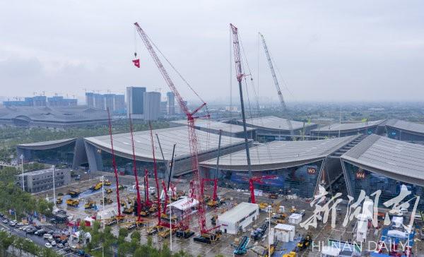 (5月18日,長沙國際會展中心外,塔吊林立,場面壯觀。湖南日報·華聲在線記者 辜鵬博 攝)