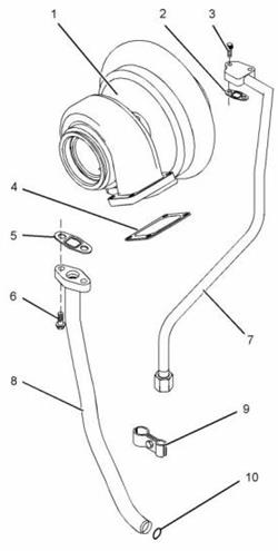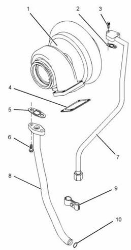 8. 將管組件(7)和(8)的螺栓擰緊至47 N•m(35 lb ft)。