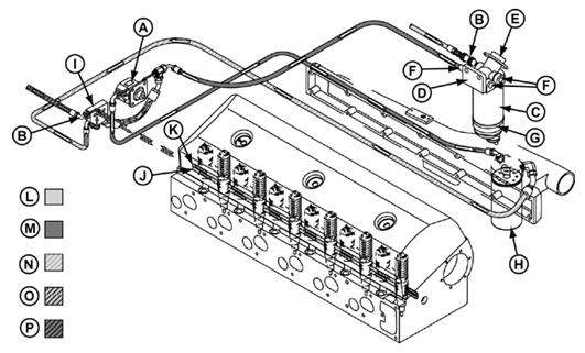 A—Fuel Transfer Pump E—Hand Primer Pump I—Fuel Manifold M—Primary-Filtered Fuel