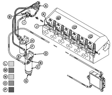 C—Primary Filter G—Water Separator Bowl K—Fuel Return Rail O—Recirculated Fuel