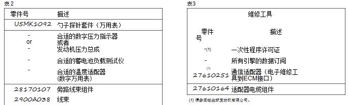 表 2列出在維修發(fā)動機時可以使用的可選維修工具。