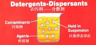清凈劑和分散劑是用來控制機(jī)油中不溶物質(zhì)( 碳、燃燒不完全的柴油、漆、漆狀膠結(jié)物),添加劑附著在污染物微粒上,使其保持懸浮以防止殘?jiān)练e。這些微粒被分開成很細(xì)小,以致太小不能從機(jī)油濾清器中濾出。這些污染物能在換機(jī)油時(shí)排放出去。