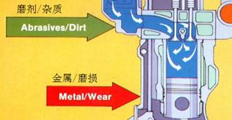 磨劑或雜質(zhì)由參加燃燒的空氣、燃料和不適當(dāng)?shù)木S修活動(dòng)而進(jìn)入發(fā)動(dòng)機(jī)。它們經(jīng)過各自的通道和燃燒的副產(chǎn)品一起進(jìn)入曲軸箱。金屬雜質(zhì)是由于發(fā)動(dòng)機(jī)的正常磨損和其他原因產(chǎn)生的。