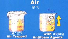 在機(jī)油中含有一定量的空氣是正常的。然而,大量的空氣會(huì)引起泡沫,從而損害機(jī)油的潤(rùn)滑能力。阻泡劑通常是硅酮聚合物,其功能是通過它們自己吸附在小氣泡上,在氣泡上形成一個(gè)薄弱點(diǎn),使小氣泡集聚成大氣泡上升到表面,最終破裂釋放到大氣中去。