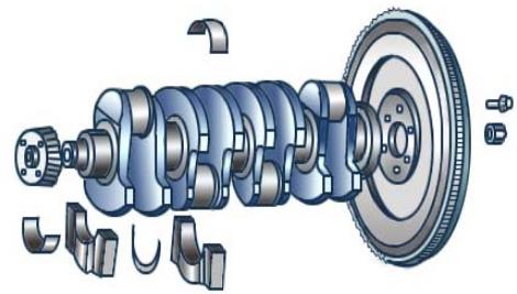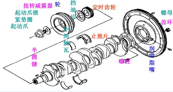 發(fā)動機曲軸是一個扭轉(zhuǎn)彈性系統(tǒng),本身具有一定的自振頻率。在發(fā)動機工作過程中,經(jīng)連桿傳給曲柄銷的作用力的大小和方向都是周期性變化的,這種周期性變化的激振力作用在曲拐上,引起曲拐回轉(zhuǎn)的瞬時角速度也呈周期性變化。由于固裝在曲軸上的飛輪轉(zhuǎn)動慣量大,其角速度基本上可看做是均勻的。這樣,曲拐便會忽而比飛輪轉(zhuǎn)得快,忽而又比飛輪轉(zhuǎn)得慢,形成相對于飛輪的扭轉(zhuǎn)擺轉(zhuǎn),也就是曲軸的扭轉(zhuǎn)振動。當激力頻率與曲軸自振頻率成整數(shù)倍時,曲軸扭轉(zhuǎn)振動便因共振而加劇。這將使發(fā)動機功率受到損失,定時齒輪或鏈條磨損增加,嚴重時甚至將曲軸扭斷。為了消減曲軸的扭轉(zhuǎn)振動,有的發(fā)動機在曲軸前端裝有扭轉(zhuǎn)減振器。