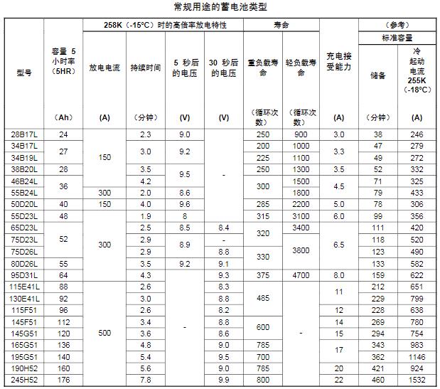 蓄電池類型下表顯示的是 JIS D 5301-1999 規(guī)定的蓄電池類型。
