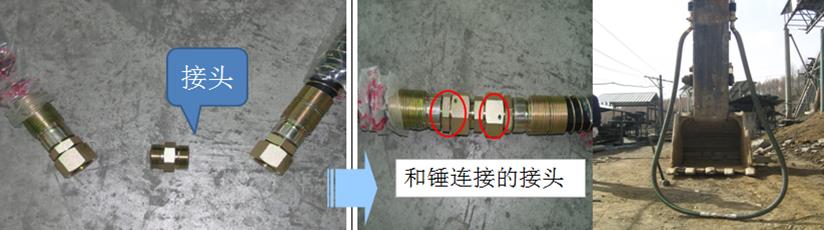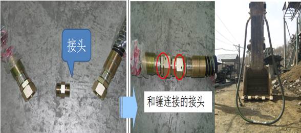 然后把兩根油管和錘連接接頭用上述接頭連接并確認是否擰緊。 |