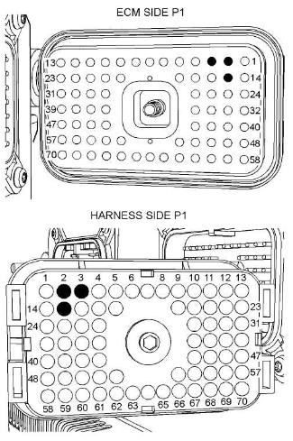 圖15P1 ECM接頭(980H)端子位置(P1-2) 傳感器電源 (P1-3) 傳感器回線 (P1-15) 渦輪增壓器進(jìn)氣壓力圖16