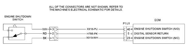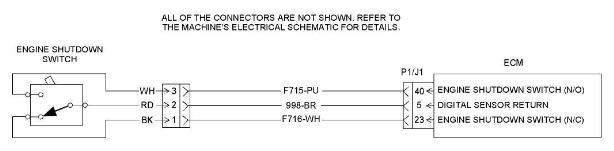 圖63CAT發(fā)動(dòng)機(jī)熄火開(kāi)關(guān)接線圖(834G, 834H, 836G, 836H, 988G, 和 988H)g01195479測(cè)試步驟