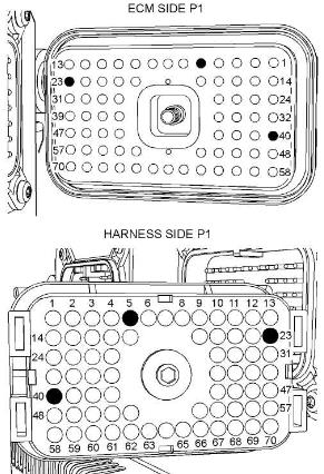 圖64g01141049J1/P1 ECM接頭位置(CAT發(fā)動(dòng)機(jī)左視圖)