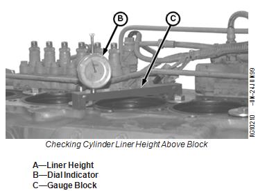 A—Liner Height B—Dial Indicator C—Gauge Block