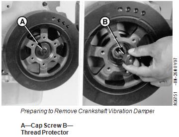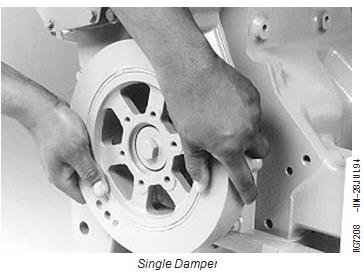 IMPORTANT: DO NOT use a jaw-type puller to remove vibration damper. Damage could result to the damper. Never apply thrust on outer ring of damper. Do not drop or hammer on damper.
