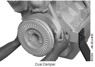Also, replace damper whenever crankshaft is replaced or major engine overhaul is performed. Dual dampers should always be replaced as a matched set.