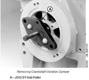 4. Remove damper from crankshaft using JDG721 Hub Puller (A).