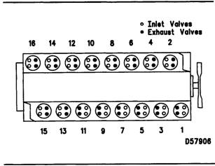 4. 當(dāng)1號(hào)活塞在進(jìn)行壓縮沖程時(shí),1號(hào)汽缸的進(jìn)氣閥和排氣閥都處于完全關(guān)閉位置。如果搖臂不能移動(dòng)且閥門(mén)稍微打開(kāi),1號(hào)汽缸則處于排氣沖程。參看曲柄軸氣門(mén)間隙位置設(shè)定表以獲得汽缸在安裝了定時(shí)螺栓后,在經(jīng)過(guò)檢查/經(jīng)過(guò)調(diào)節(jié)后的曲柄軸沖程位置。