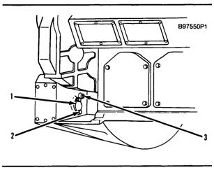 1. 從飛輪罩右前側(cè)卸下外蓋(1)和定時(shí)孔插塞。在某些卡特CAT發(fā)動(dòng)機(jī)上,外蓋和定時(shí)螺栓孔插塞位于左側(cè)。