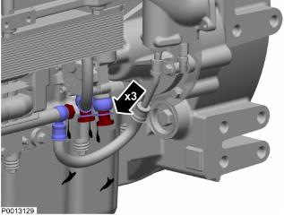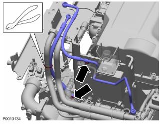 4 注意 準(zhǔn)備收集液體。松開與燃油泵連接的燃油接頭。松開下部冷卻盤管接頭。