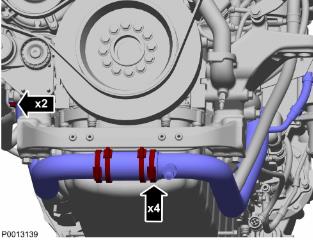 22 拆下兩根油管。拆下油管支架;參見引油支架,更換 233 頁。