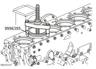 5 如果缸套到達(dá)拔具時(shí)沒有松開,則充分地松開用于待安裝的隔片 9996395 的螺母。繼續(xù)向上拉動缸套直到缸套松開。