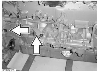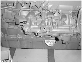 20 將燃油管安裝到缸蓋前方并夾緊吊耳下方的管路。左邊圖示為較低型號(hào)發(fā)動(dòng)機(jī)上的燃油管。圖示為帶有雙渦輪增壓器的發(fā)動(dòng)機(jī)。