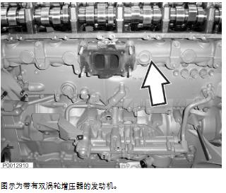 10 在排氣歧管上安裝兩個(gè)密封環(huán),用于冷卻水和六個(gè)排氣歧管密封墊。注意 排氣歧管密封墊在必須面向歧管的一側(cè)標(biāo)記。在螺母下使用墊圈并安裝新螺母。安裝閥殼體和渦輪增壓器期間,扭轉(zhuǎn)新螺母時(shí)切勿緊固。注意 所有單渦輪發(fā)動(dòng)機(jī)和 IPS 雙渦輪發(fā)動(dòng)機(jī)的排氣歧管可直接緊固。