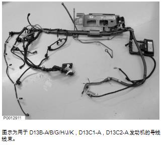 12 安裝大連接支架。下一步,安裝將導(dǎo)線線束固定在進(jìn)氣歧管下面的導(dǎo)軌。圖示為帶有雙渦輪增壓器的發(fā)動(dòng)機(jī)。圖示為用于D13B-A/B/G/H/J/K,D13C1-A,D13C2-A發(fā)動(dòng)機(jī)的導(dǎo)線線束。圖示為 D13B-A/B/G/H/J/K,D13C1-A,D13C2-A 發(fā)動(dòng)機(jī)。
