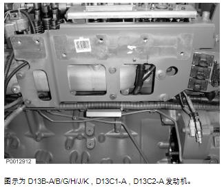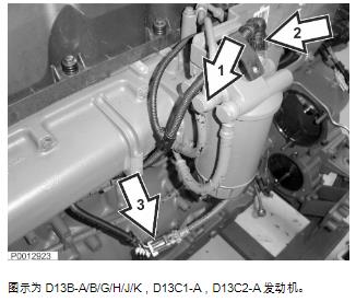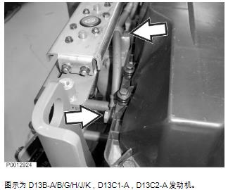 25 安裝燃油泵并連接燃油管路。圖示為 D13B-A/B/G/H/J/K,D13C1-A,D13C2-A 發(fā)動(dòng)機(jī)。圖示為 D13B-A/B/G/H/J/K,D13C1-A,D13C2-A 發(fā)動(dòng)機(jī)。
