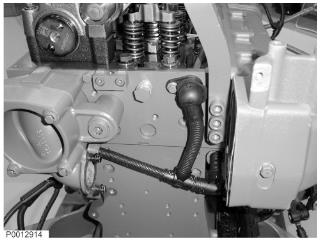 24 安裝缸蓋燃油管路并用兩個(gè)夾子牢牢夾緊在吸入管上。