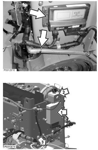 23 安裝燃料過(guò)濾器支架。安裝燃油管(1)。安裝新燃油過(guò)濾器。將線束端子連接到燃油壓力傳感器(2)上。僅適用于 D13B-A/B/G/H/J/K,D13C1-A,D13C2-A連接燃油中含水傳感器線束端子(3)。