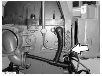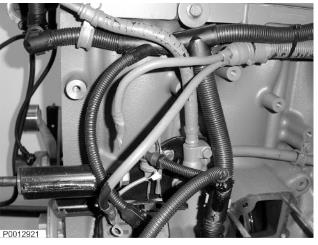 11 在導(dǎo)線線束上安裝連接支架。安裝位于導(dǎo)線線束后面的燃料管。
