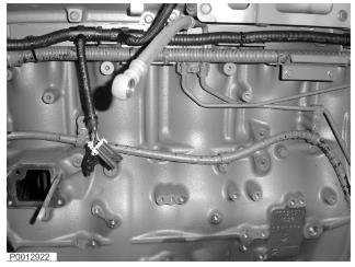 17 用夾子將導(dǎo)線線束固定到起動(dòng)馬達(dá)下面并連接凸輪軸傳感器。