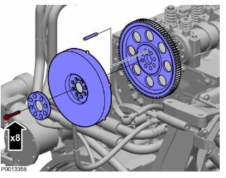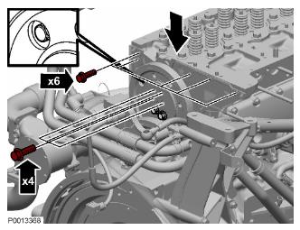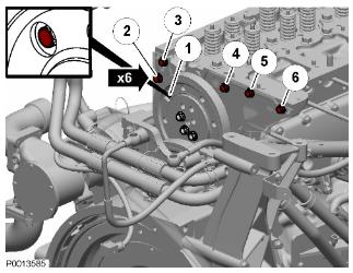 47 正時(shí)盤按順序緊固螺栓。緊固扭矩:28 Nm (20.65 lbf.ft.)。惰輪進(jìn)行齒輪隙調(diào)整之后,按照規(guī)定緊固。