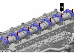 25 拆下凸輪軸蓋螺栓。檢查并確認(rèn)凸輪軸蓋已做標(biāo)記。