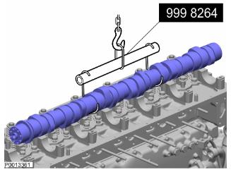 50 小心切割危險(xiǎn)!保護(hù)您的雙手!檢查凸輪軸中是否有水;參見凸輪軸,磨損檢查 201 頁。安裝 9998264 提升工具。
