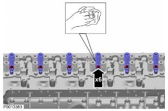 31 將 9998251 保護(hù)塞插入缸蓋中。以相同的方式拆下剩余的噴油器。