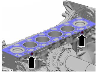 40 安裝新的缸蓋襯墊,并將其與缸套對準(zhǔn)。緊固兩個(gè)螺栓和墊圈。