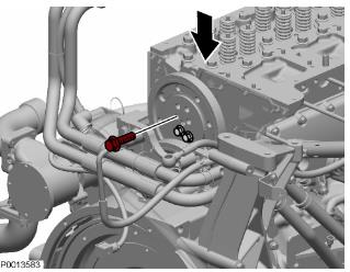 28 清潔單體泵周圍部分并松開噴油器軛螺栓。