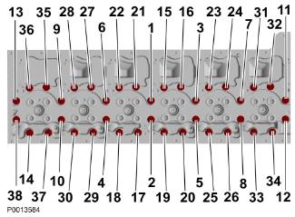 46 安裝缸蓋螺栓。注意 按圖示順序緊固螺栓;參見特殊緊固扭矩 8 頁中的“缸蓋”。