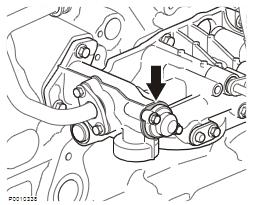 3 檢查并確認(rèn)油路中無污物。清潔 O 形圈的凹槽。4 將新的 O 形圈安裝到凹槽中。安裝新的恒溫器。緊固螺栓。5 起動發(fā)動機,檢查并確認(rèn)沒有漏油。