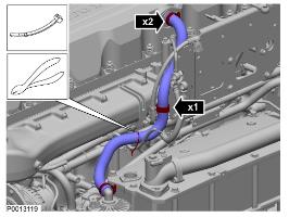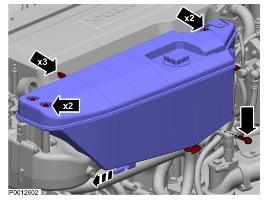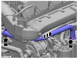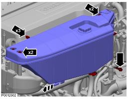 3 排放冷卻劑;參見冷卻劑,排放 330 頁。松開軟管夾。拆下液位傳感器接頭。拆下膨脹箱。